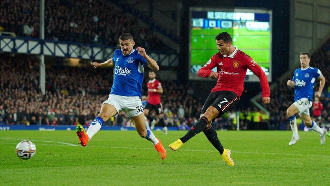 Ronaldo menyumbang satu gol saat MU menang 2-1 atas Everton di Goodison Park dalam lanjutan Premier League, Senin (10/10/2022) dini hari WIB. Penyerang asal Portugal itu menjadi penentu kemenangan MU lewat golnya pada menit ke-44.