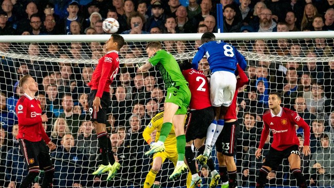Bola sepak pojok kemudian disepak pemain Everton ke arah depan gawang Man United. Si kulit bundar mengarah tepat ke Jordan Pickford, yang dalam posisi bagus untuk menanduk bola.