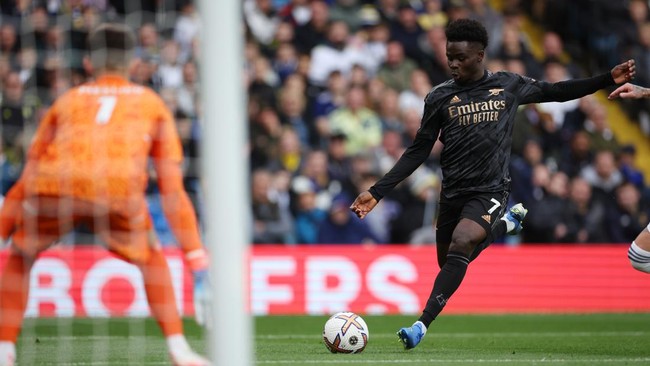 Arsenal berhasil membuka keunggulan 1-0 di menit ke-34. Bukayo Saka secara mengejutkan membobol gawang Leeds dari sudut sempit.