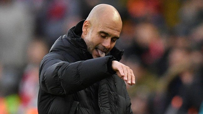 Manchester City takluk dalam lawatannya ke markas Liverpool. Pep Guardiola pun meringis ketika tahu gawang City bakal dibobol Mohamed Salah.
