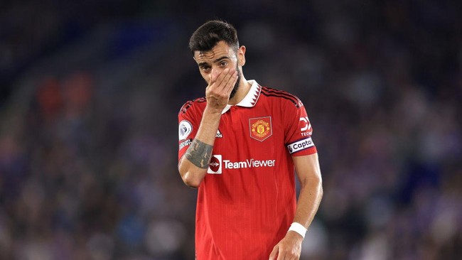 Bruno Fernandes harus menjalani hukuman akumulasi kartu kuning saat melawan Villa. Dia mendapatkan kartu kuning kelima saat MU melawan West Ham United.