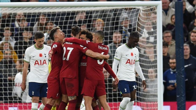 Liverpool melawat ke Tottenham Hotpsur stadium, Minggu (6/11/2022) malam WIB. Mohamed Salah membawa Liverpool memimpin 2-0 di babak pertama, sebelum dipangkas Harry Kane di babak kedua.