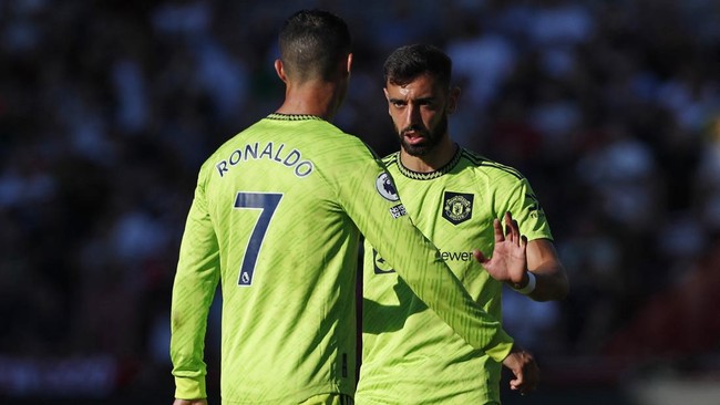 Cristiano Ronaldo dan Bruno Fernandes bertemu untuk kali pertama setelah wawancara bombastis yang mengguncang Manchester United. Keduanya digambarkan canggung.