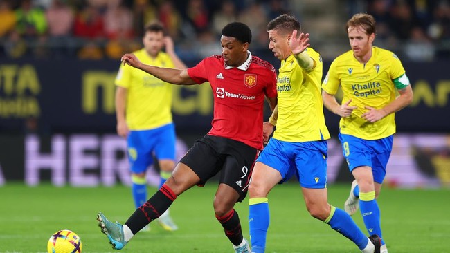 Anthony Martial menipiskan selisih lewat penalti pada menit ke-21, disusul gol penyama kedudukan dari Kobbie Mainoo pada awal babak kedua. Tapi Cadiz mencetak dua gol lain di sisa waktu, lewat Ruben Sobrino dan Tomas Alarcon.