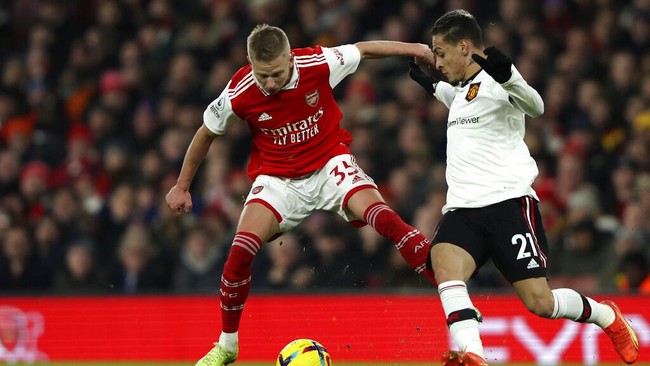 MU unggul duluan lewat gol Marcus Rashford, Arsenal balik memimpin 2-1 melalui Eddie Nketiah dan Bukayo Saka. Man United kemudian mengimbangi 2-2 melalui Lisandro Martinez dan The Red Devils harus kebobolan di menit ke-90 akibat sontekan Nketiah.