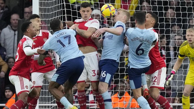 Arsenal membangun serangan apik pada menit ke-43. Ben White melepaskan umpan silang dari kanan, lalu dipantulkan Granit Xhaka ke tengah dengan sundulan.