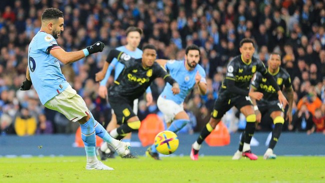 Riyad Mahrez menyerobot jatah penalti Erling Haaland saat Manchester City vs Aston Villa. Erling Haaland harusnya jadi penendang penalti utama The Citizens.