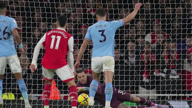 The Gunners baru bisa menyamakan skor 1-1 pada menit ke-42. Bukayo Saka merobek gawang Ederson Moraes dari eksekusi penalti.