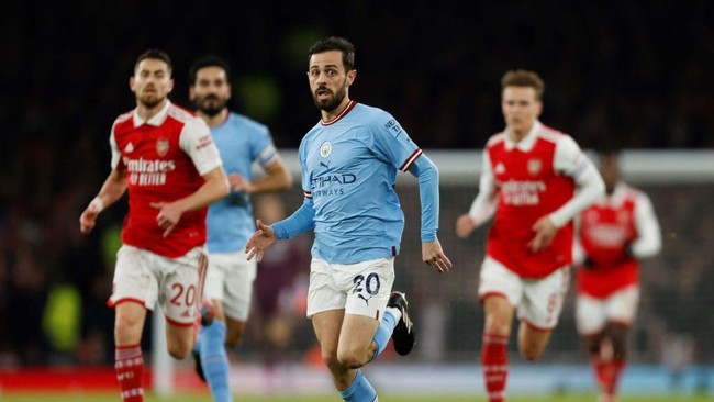 Bernardo Silva tampil apik di dua posisi yang berbeda kala Manchester City mengalahkan Arsenal. Ia awalnya bermain di bek kiri kemudian digeser ke sayap kanan.