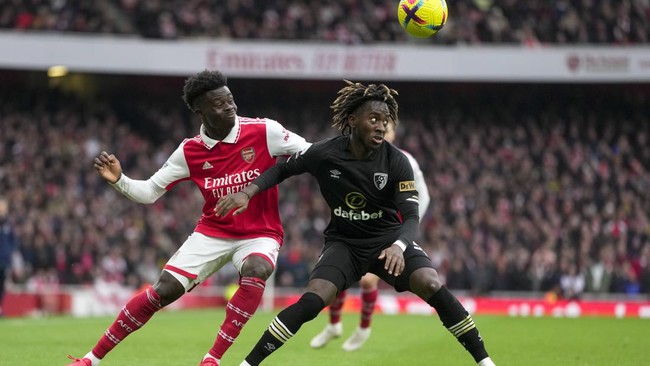 Arsenal tertinggal 0-1 dari Bournemouth pada babak I di Emirates Stadium, Sabtu (4/3/2023) malam WIB. Tim tamu unggul berkat gol 11 detik Philip Billing.