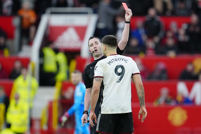 Aleksandar Mitrovic kena kartu merah saat Fulham tandang ke MU di Piala FA, karena dorong wasit. Bruno Fernandes pernah lakukan hal itu, tapi kok aman-aman saja?