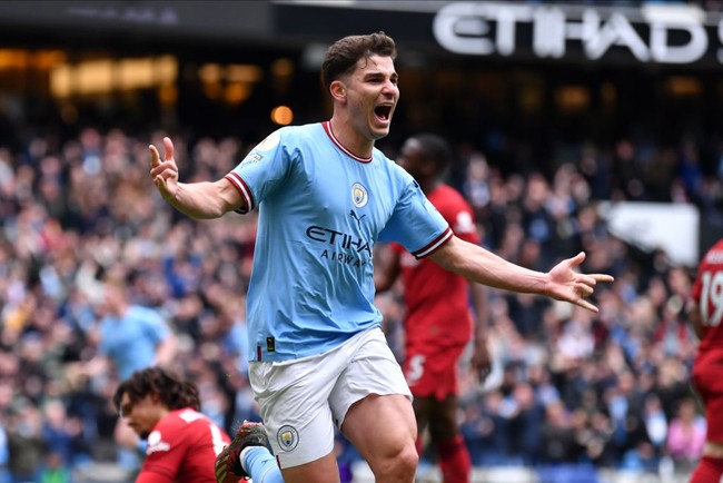 Liverpool sempat unggul duluan lewat gol Mohamed Salah di menit ke-17. City samakan kedudukan lewat Alvarez 10 menit kemudian.