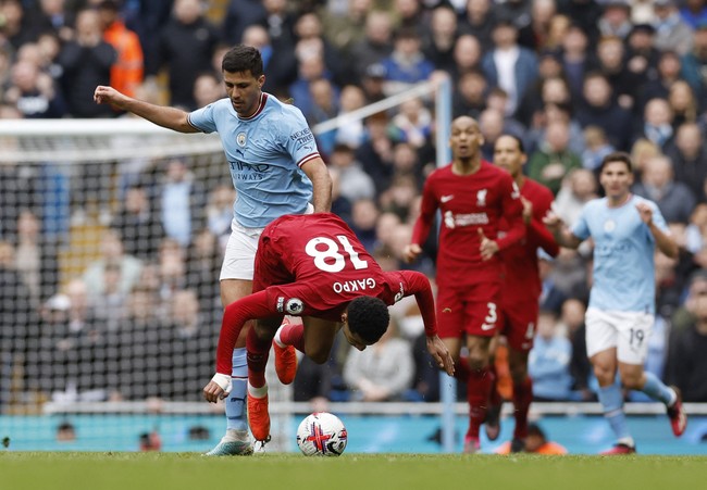 Gelandang Spanyol itu diganjar kartu kuning setelah menerjang Diogo Jota pada menit ke-33. Hanya beberapa saat kemudian Rodri melakukan pelanggaran lagi dengan menarik Cody Gakpo dengan kedua tangannya. Akan tetapi, wasit Simon Hooper tidak mengeluarkan kartu lain untuk Rodri, keputusan yang diprotes sejumlah pemain Liverpool.