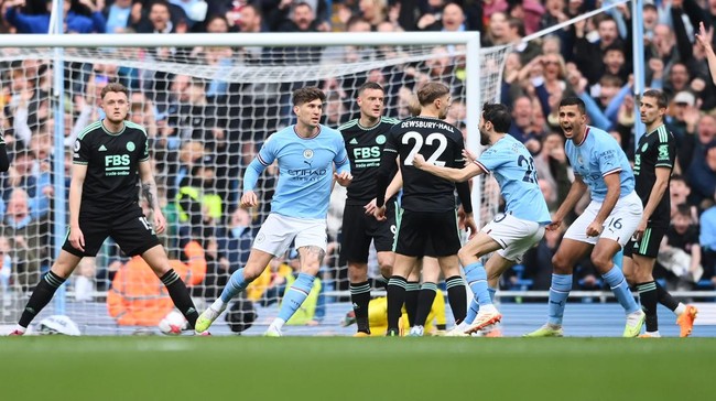 Bertanding di Etihad Stadium, Sabtu (15/4/2023) malam WIB, Man City sudah memimpin di menit kelima. Bola yang disambar John Stones di depan kotak penalti sukses menghujam gawang Leicester.
