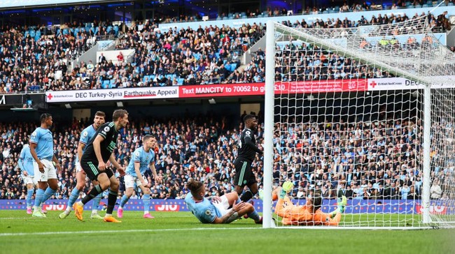 Man City vs Leicester tuntas pada Minggu (16/4/2023) dini hari WIB. Dalam lanjutan Liga Inggris yang berlangsung di Etihad Stadium ini, Man City memimpin 3-0 di babak pertama lewat John Stones dan brace Erling Haaland.