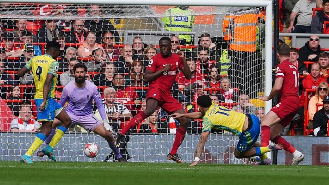 Liverpool berjuang keras mengamankan kemenangan 3-2 atas Nottingham Forest di Anfield, Sabtu (22/4/2023) malam WIB, dalam lanjutan Liga Inggris. Unggul dua kali lewat Diogo Jota, Liverpool dua kali pula kebobolan masing-masing oleh Neco Williams dan Morgan Gibbs-White.