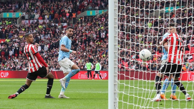 Di Wembley, Sabtu (22/4/2023), Man City memetik kemenangan 3-0 atas Sheffield United di semifinal Piala FA. Riyad Mahrez menjadi pahlawan dengan hat-trick yang dibukukan.