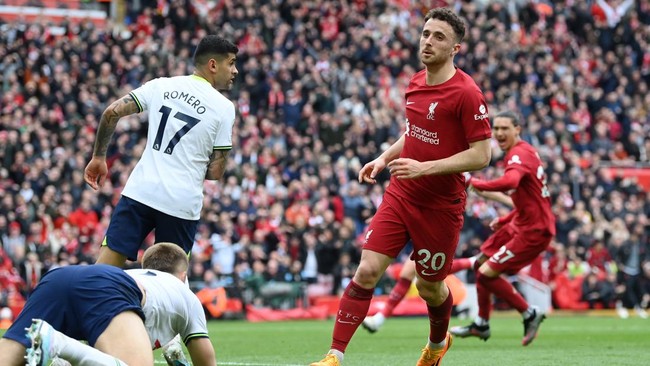 Liverpool memetik kemenangan atas Spurs dengan skor akhir 4-3. Dalam pertandingan di Anfield, Minggu (30/4/2023), curtis Jones, Luis Diaz, Mohamed Salah, dan Diogo Jota pencetak golnya.
