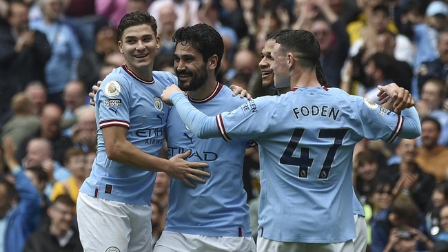 Manchester City unggul 2-0 atas Leeds United di Etihad, Sabtu (6/5/2023) malam WIB, dalam lanjutan Liga Inggris. 2 gol itu dibuat oleh Ilkay Guendogan.