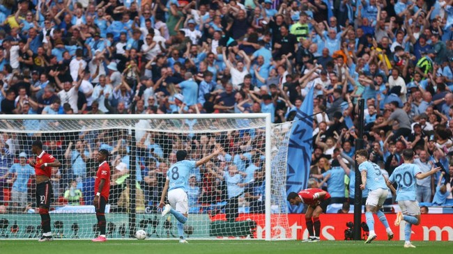 MU harus puas dengan status runner-up usai kalah dari Manchester City 1-2 di Wembley tadi malam (3/6). Start buruk dilakoni Setan Merah usai dibobol Ilkay Guendogann hanya 13 detik setelah kickoff.