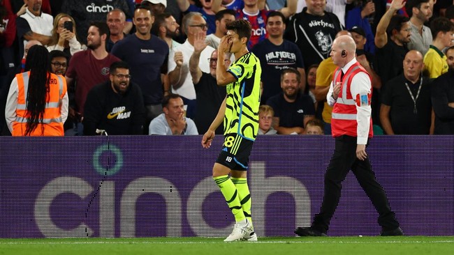 Momen kontroversial mewarnai kemenangan tipis Arsenal di kandang Crystal Palace 1-0. Bek kanan Arsenal Takehiro Tomiyasu dinilai tidak pantas dikartu merah.