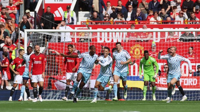 Morgan Gibbs-White menyundul bola ke depan, membebaskan Awoniyi di depan. Marcus Rashford yang turun ke lini pertahanan mencoba mengejar Awoniyi, tapi pemain yang disebut terakhir dengan tenang menembus kotak penalti lalu menuntaskan dengan tembakan mendatar. Forest memimpin 1-0 atas MU.