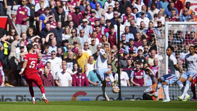 Liverpool menutup babak pertama laga kontra Aston Villa dengan keunggulan 2-0 lewat gol-gol Dominik Szoboszlai dan bunuh diri Matty Cash.