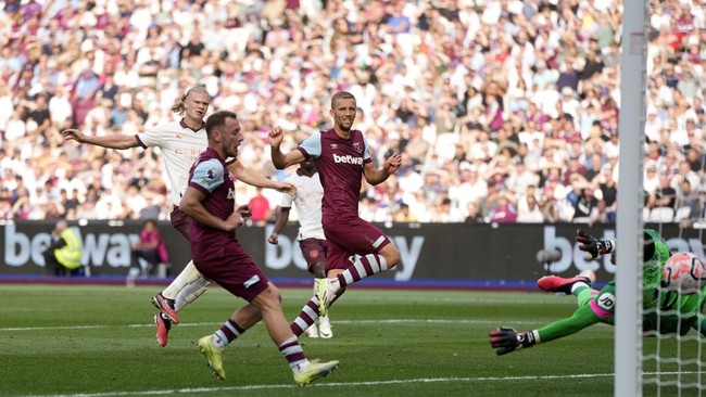 Penjaga gawang West Ham, Alphonse Areola, sudah bekerja keras di awal laga. Ia menggagalkan dua peluang The Citizens dari sundulan Rodri dan tendangan jarak dekat Ruben Dias yang lahir dari situasi sepak pojok.