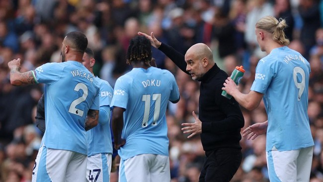 Manajer Manchester City Pep Guardiola lagi pusing jelang duel kontra Newcastle United di Carabao Cup 2023/2024. Sebab, para pemain bertumbangan karena cedera.