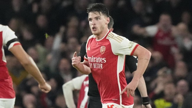Declan Rice mencetak gol pertama Arsenal di pertandingan ini. Dia memanfaatkan bola liar di luar kotak penalti Chelsea setelah kiper mereka Robert Sanchez melakukan kesalahan dalam mengoper.