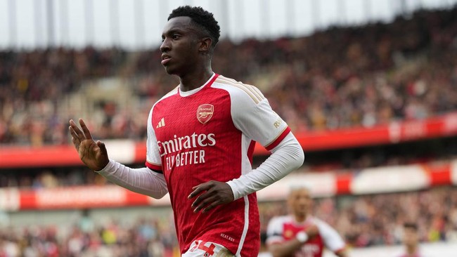 Eddie Nketiah jadi bintang dalam kemenangan Arsenal atas Sheffield United. Menggantikan Gabriel Jesus yang cedera, Nketiah memberi pembuktian dengan hat-trick.