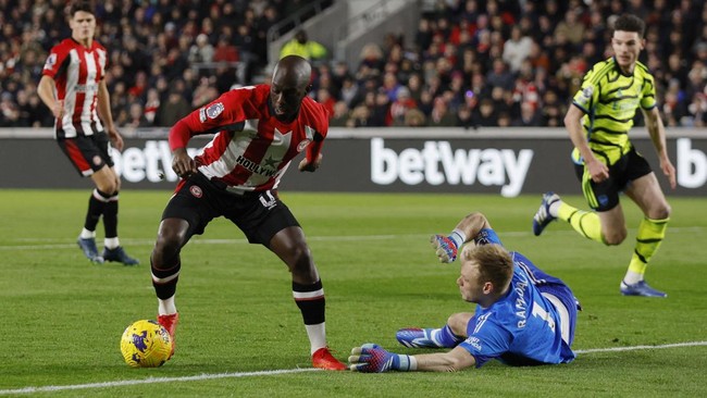 Wissa kemudian menyodorkan bola ke Bryan Mbeumo, yang langsung diselesaikan dengan tembakan. Beruntung untuk Arsenal, Declan Rice berhasil blok bola tepat di garis gawang.