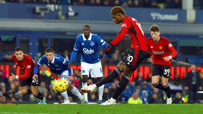 Rashford kembali dipercaya jadi starter saat MU melawat ke Goodison Park, Minggu (26/12/2023) malam WIB. Dia bermain sebagai winger kanan bersama Alejandro Garnacho dan Bruno Fernandes menopang Anthony Martial sebagai striker utama.