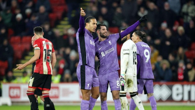 Liverpool meraih kemenangan 2-0 atas Sheffield United di Bramall Lane pada laga pekan ke-15 Premier League, Kamis (7/12/2023). Dua gol Si Merah dibuat oleh Virgil van Dijk dan Dominik Szoboszlai.