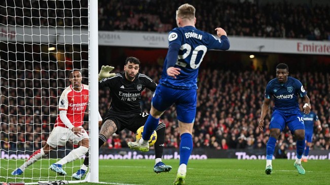 Arsenal kalah 2-0 dari West Ham United pada laga lanjutan Liga Inggris yang berlangsung di Emirates Stadium, Jumat (29/12/2023) dini hari WIB. The Hammers menang berkat gol dari Tomas Soucek dan Konstantinos Mavropanos.