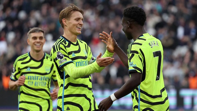 Arsenal ternyata tidak habis bensin setelah akhir pekan lalu menumbangkan Liverpool 3-1. Martin Odegaard senang dengan penampilan apik berlanjut di markas West Ham.