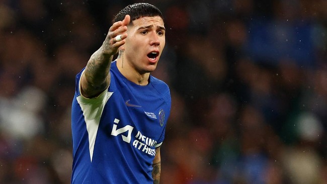 Ada momen yang sedikit bernuansa ketegangan saat Enzo Fernandez menapaki tangga Wembley untuk menerima medali runner-up Chelsea di Carabao Cup, lantaran kena ledek suporter Liverpool.