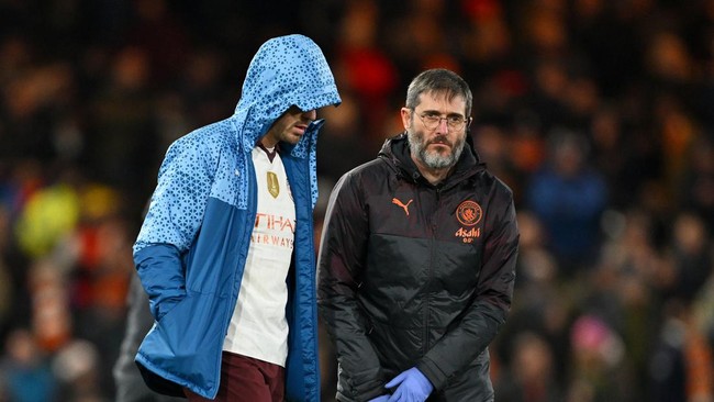 Jack Grealish kembali cedera. Pemain Manchester City itu terlihat terpukul atas kondisinya.