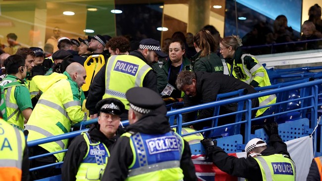 Laga Chelsea vs Leeds United di Piala FA diwarnai kabar buruk dari suporter. Ada pendukung tim tamu yang terjatuh dari tribune atas Stamford Bridge.