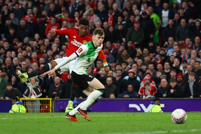 Dalam proses golnya, Liverpool lagi mengancam dari situasi tendangan sudut. McTominay menyapu bola, lalu Amad Diallo mencurinya dari Elliott.