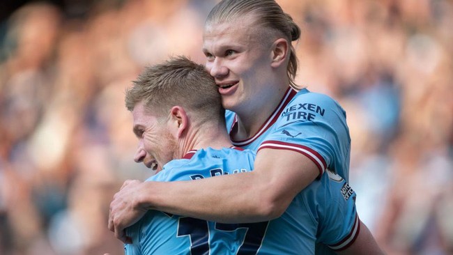 Keduanya hanya duduk di bangku cadangan. Haaland dan De Bruyne baru pulih dari cedera.