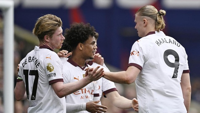 City menang 4-2 di kandang Crystal Palace, Sabtu (7/4/2024) malam WIB. Tertinggal duluan karena gol Jean-Philippe Mateta, City berbalik unggul 4-1 lewat sepasang gol Kevin De Bruyne yang diselingi gol-gol Rico Lewis dan Erling Haaland.