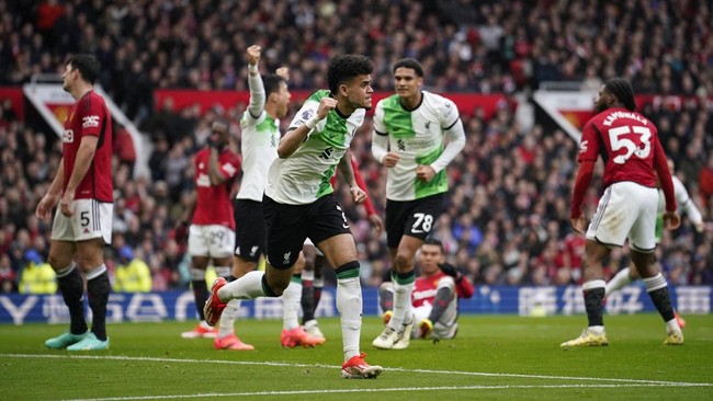 Liverpool unggul 1-0 atas Manchester United pada babak I di Old Trafford, Minggu (7/4/2024) malam WIB. Gol tendangan gunting Luis Diaz jadi pembeda.