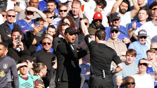 Manajer Burnley, Vincent Kompany, dapat kartu merah saat timnya menghadapi Chelsea. Legenda Manchester City itu pun kena sanksi larangan dua pertandingan.