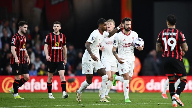 MU melawat ke Vitality Stadium, Sabtu (13/4/2024) malam WIB. Mereka tertinggal duluan karena gol Dominic Solanke pada menit ke-17 sebelum menyamakan berkat gol Bruno Fernandes pada menit ke-33.