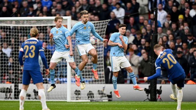 Kontroversi mengiring kemenangan Manchester City atas Chelsea Piala FA. Jack Grealish handball menahan tembakan Cole Palmer tapi wasit tak beri penalti.