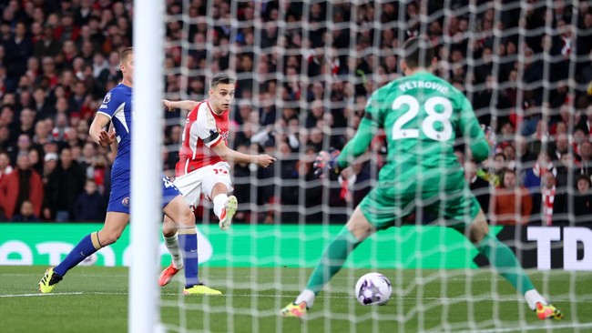Arsenal vs Chelsea berlangsung di Emirates Stadium, dalam lanjutan Liga Inggris, Rabu (24/4/2024) dini hari WIB. Leandro Trossard membawa The Gunners memimpin 1-0 di babak pertama, yang tepatnya pada menit keempat.
