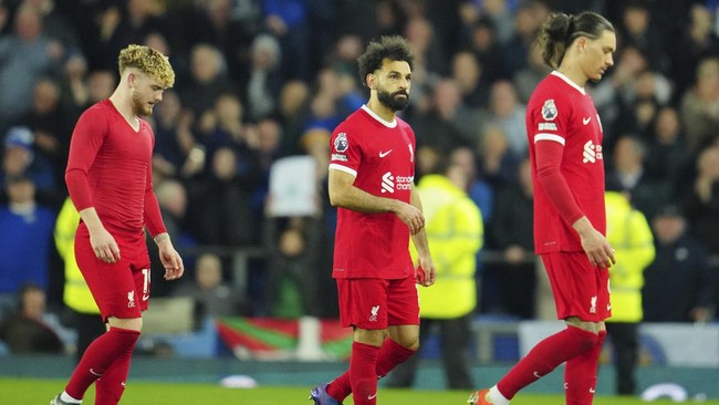 Liverpool kembali terpeleset di persaingan juara Liga Inggris, usai dibungkam Everton 0-2 di Goodison Park, Kamis (25/4/2024) dini hari WIB. Gol dari Jarrad Branthwaite dan Dominic Calvert-Lewin menghukum Liverpool yang masih boros peluang dan rentan eror saat bertahan.