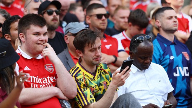 Melansir The Sun, fans Arsenal terlihat diledek habis suporter Chelsea. Momen itu terjadi tak lama setelah Arsenal dipastikan gagal juara Liga Inggris.