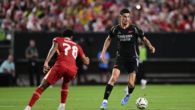 Arsenal kalah 1-2 dari Liverpool dalam laga uji coba di Lincoln Financial Field, Philadelphia, Kamis (1/8/2024) pagi WIB. Gol Mohamed Salah dan Fabio Carvalho hanya berhasil dibalas sekali lewat Kai Havertz.